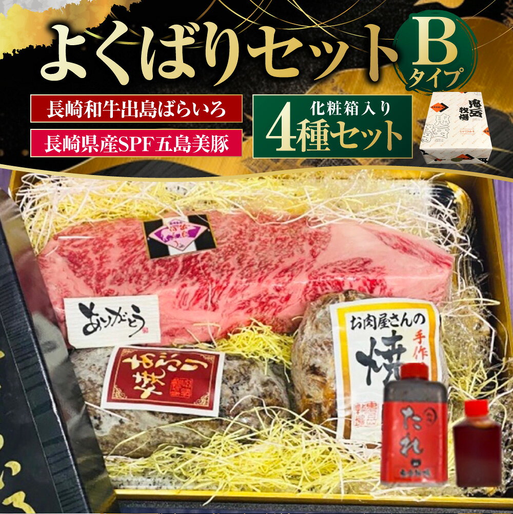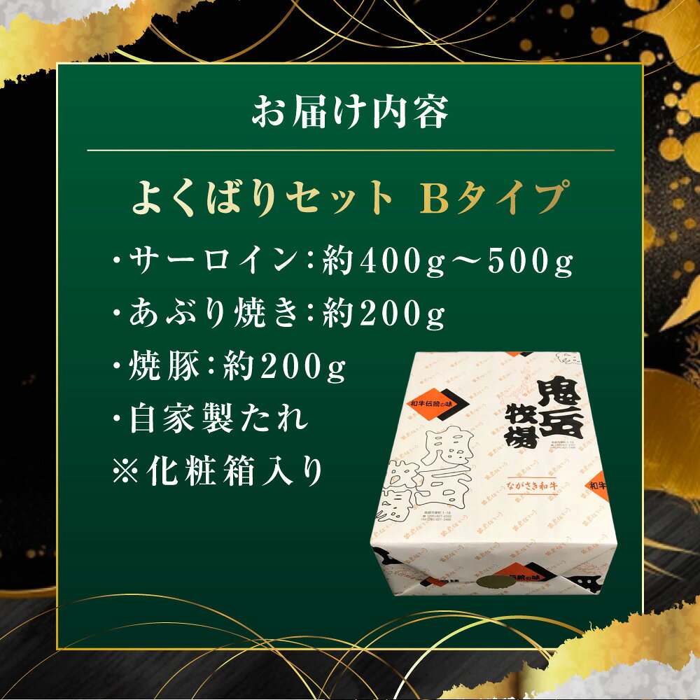 - 【ふるさと納税】よくばりセットBタイプ【長崎和牛出島ばらいろ・長崎県産SPF五島美豚】 サーロイン あぶり焼き 焼豚 チャーシュー 牛肉 豚肉 お肉 霜降り 自家製たれ タレ 惣菜 冷凍 長崎県産 国産 長崎県 長崎市 送料無料