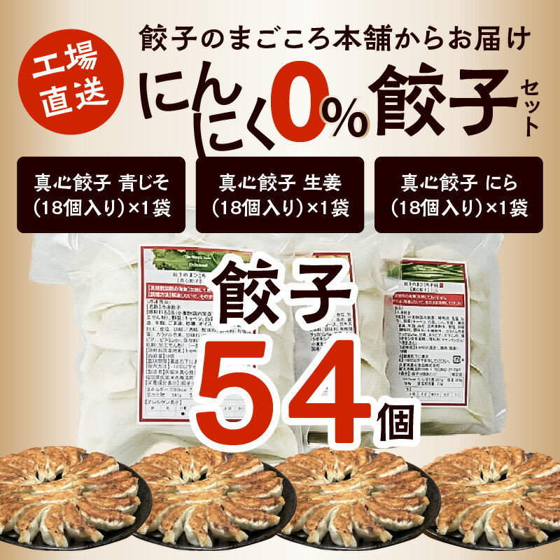 - 【ふるさと納税】にんにく0% 餃子 3種類 3袋 セット 小分け 真心餃子 各18個入り 青じそ餃子 生姜餃子 にら ニラ餃子 ニンニク不使用 餃子のまごころ本舗 工場直送 中華 福岡県 久留米市 お取り寄せ 焼くだけ 簡単 グルメ 惣菜 おかず おつまみ 加工品 冷凍 送料無料