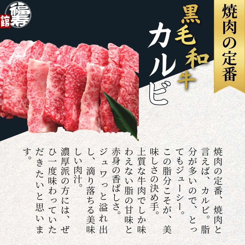 【ふるさと納税】<選べる容量> 黒毛和牛めす牛 カルビ焼肉 500g・800g 自家製焼肉のたれ付 / カルビ 焼肉 BBQ バーベキュー 食材 セット 黒毛和牛 牛肉 お中元 お歳暮 正月 ギフト 和牛 食べ物 奈良県 宇陀市 福寿館