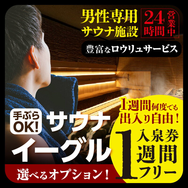 【ふるさと納税】【ふるさと納税限定】サウナイーグル1週間フリー入泉券【1週間何度でも出入り自由】【選べるチケット内容(プラン)】 24時間営業 GROW ロウリュ 男性専用施設 人工温泉 サウナ 招待チケット 8℃の水風呂 宿泊施設 送料無料