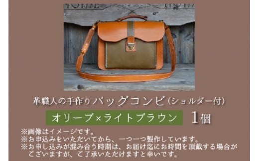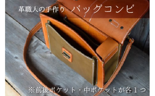 バッグコンビ(ショルダー付)【オリーブ×ライトブラウン】【本革 牛革 鞄 かばん ショルダーバッグ ハンドバッグ 手縫い 雑貨 おしゃれ オリジナル レザー職人 フウネレザーファクトリー】 [BFAJ040]