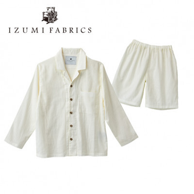 - <男女兼用 サイズ:L>長袖×半ズボン プレミアムガーゼパジャマ (カラー:パールホワイト)【1538862】