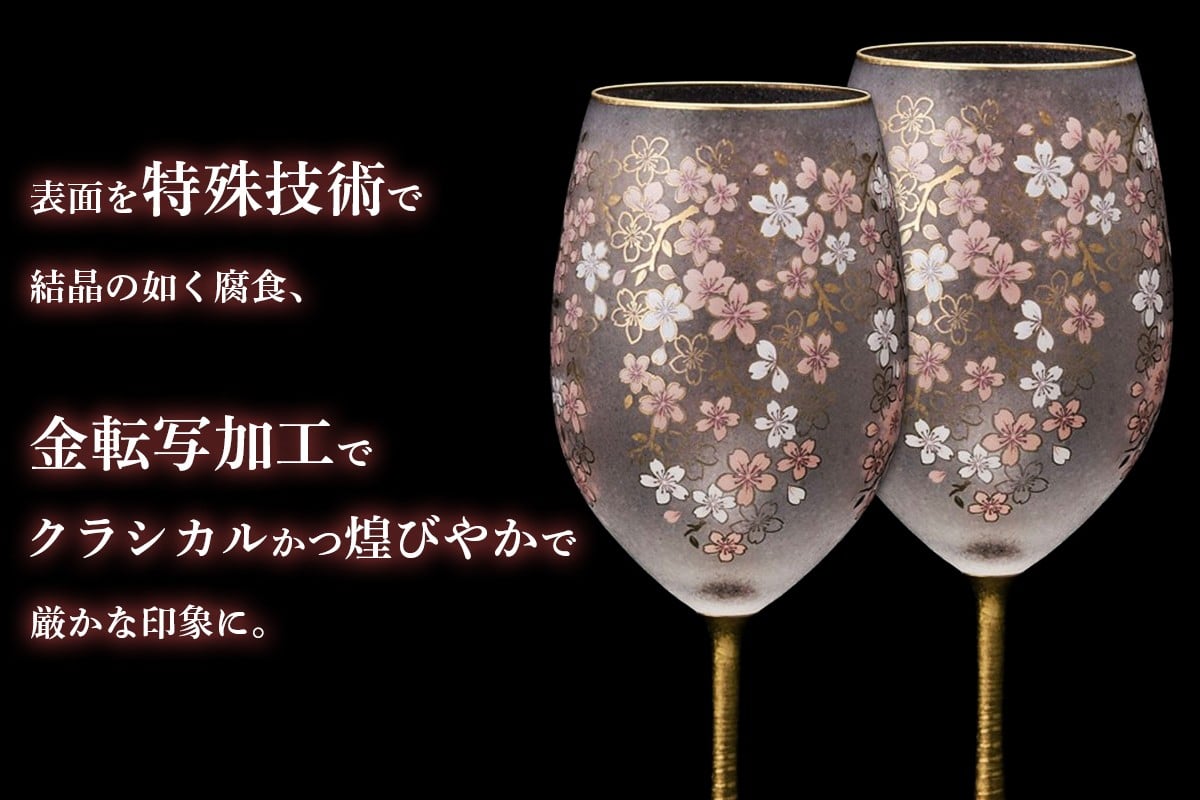 - 石塚硝子製 ペアワイングラスセット EL DORADO (SAKURA WINE)|ペアグラス ガラス コップ 食器 日本製 桜 金 ゴールド 高級 ギフト プレゼント アデリア 石塚硝子 [0541]