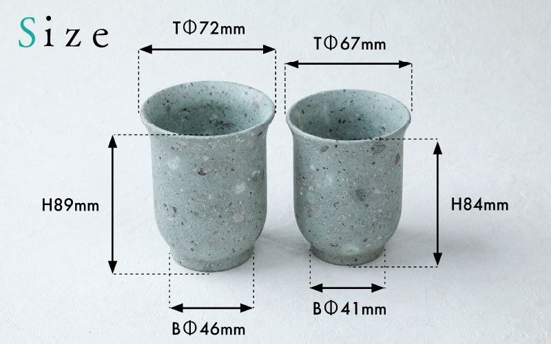 - ふくいブルー夫婦湯呑みセット【軽い 青石 笏谷石 職人 食器 石 保温 保湿 木箱入り 工芸品】[G-023001]