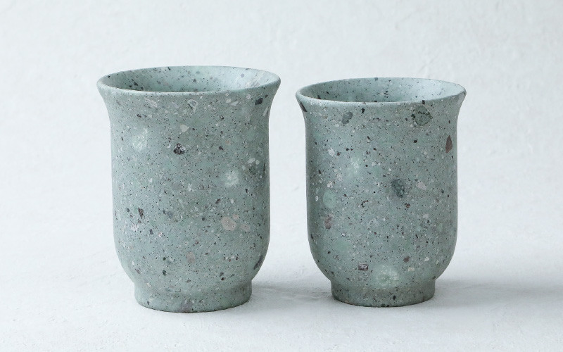 ふくいブルー夫婦湯呑みセット【軽い 青石 笏谷石 職人 食器 石 保温 保湿 木箱入り 工芸品】[G-023001]