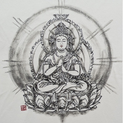 - 手描きTシャツ 仏画 大日如来 金剛界 白 (半袖 Sサイズ)【1655694】