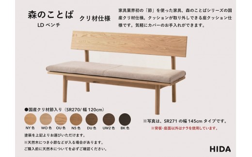 【飛騨の家具】HIDA 森のことば クリ材仕様 LDベンチ 幅120(SR270)|長椅子 腰掛け 椅子 家具 飛騨高山 ダイニング 木製 シンプル おしゃれ 人気 おすすめ 新生活 飛騨産業 CG339