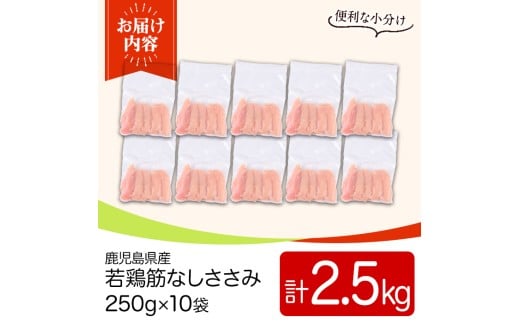 y533 鹿児島県産若鶏筋なしささみ(計2.5kg・250g×10袋) 国産 九州産 鹿児島県産 鶏肉 鳥肉 鶏 とり 若鶏 冷凍 ささみ ササミ 筋なし 小分け 真空 【TRINITY】