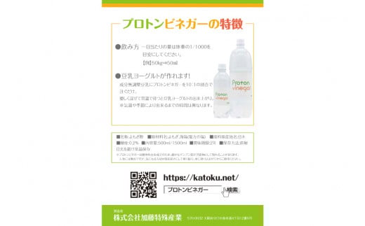 - 乳酸醗酵よもぎ酢 プロトンビネガー 720ml×2本 ドリンク [加藤特殊産業 大阪府 守口市]|よもぎ酢 腸活 乳酸菌 [2393]
