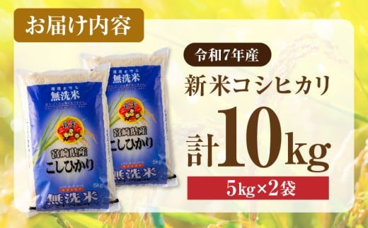 2週間以内に発送 無洗米 令和7年産 新米 コシヒカリ 計10kg 米 期間限定 宮崎県産 お米 ご飯 ライス 国産 人気 食品 精米 白米 こしひかり おにぎり お弁当 炊き込みご飯 雑炊 ギフト 贈り物 お取り寄せ 産地直送 宮崎県 日南市 送料無料_FA12-25