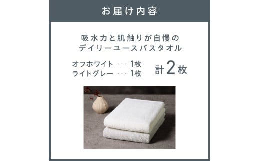- 【泉州タオル】吸水力と肌触りが自慢のデイリーユースバスタオル オフホワイト・ライトグレー 2枚【配送不可地域:北海道・沖縄・離島】 タオル バスタオル 日用品 泉州タオル タオルセット デイリーユース 【039E-107】