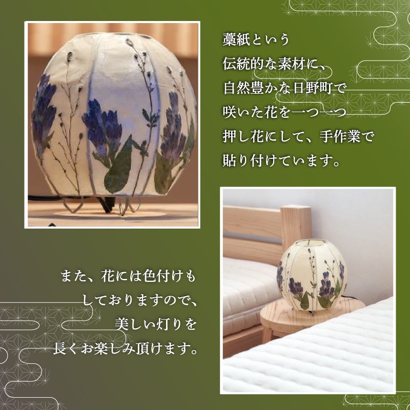 【煌】彩巴の押花灯り スタンドライト 室内用 インテリア 照明 花 おしゃれ 和風 スタンド ライト 押花 押し花 滋賀県 日野町