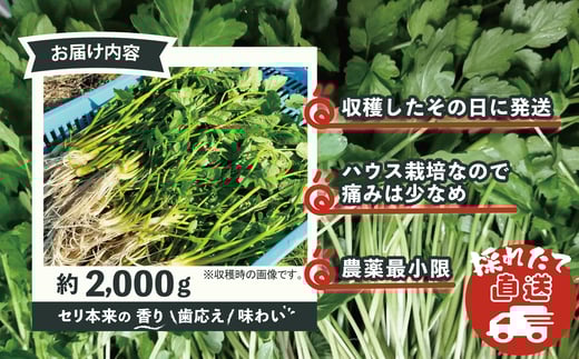 - セリ 強い香りとシャキッとした歯応え 約2,000g 600P3201 / 東北 秋田 大館 野菜 新鮮 農産物 農家 せり セリ 根っこ 根付き 野菜 せり鍋 農家直送