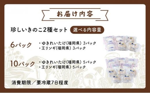 <選べる内容量>珍しいきのこ2種セット(ゆきれいたけ・王リンギ各3〜5パック)