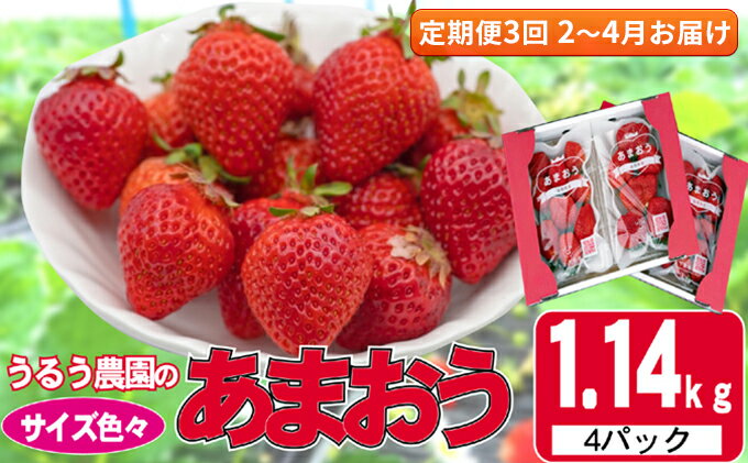- 【ふるさと納税】定期便 3回 いちご 発送時期 2025年2月~4月 うるう農園のあまおう サイズ色々 4パック 約1.14kg 配送不可 離島 果物類 フルーツ 安心 安全 美味しい 食べやすい お届け:2026年2月~4月
