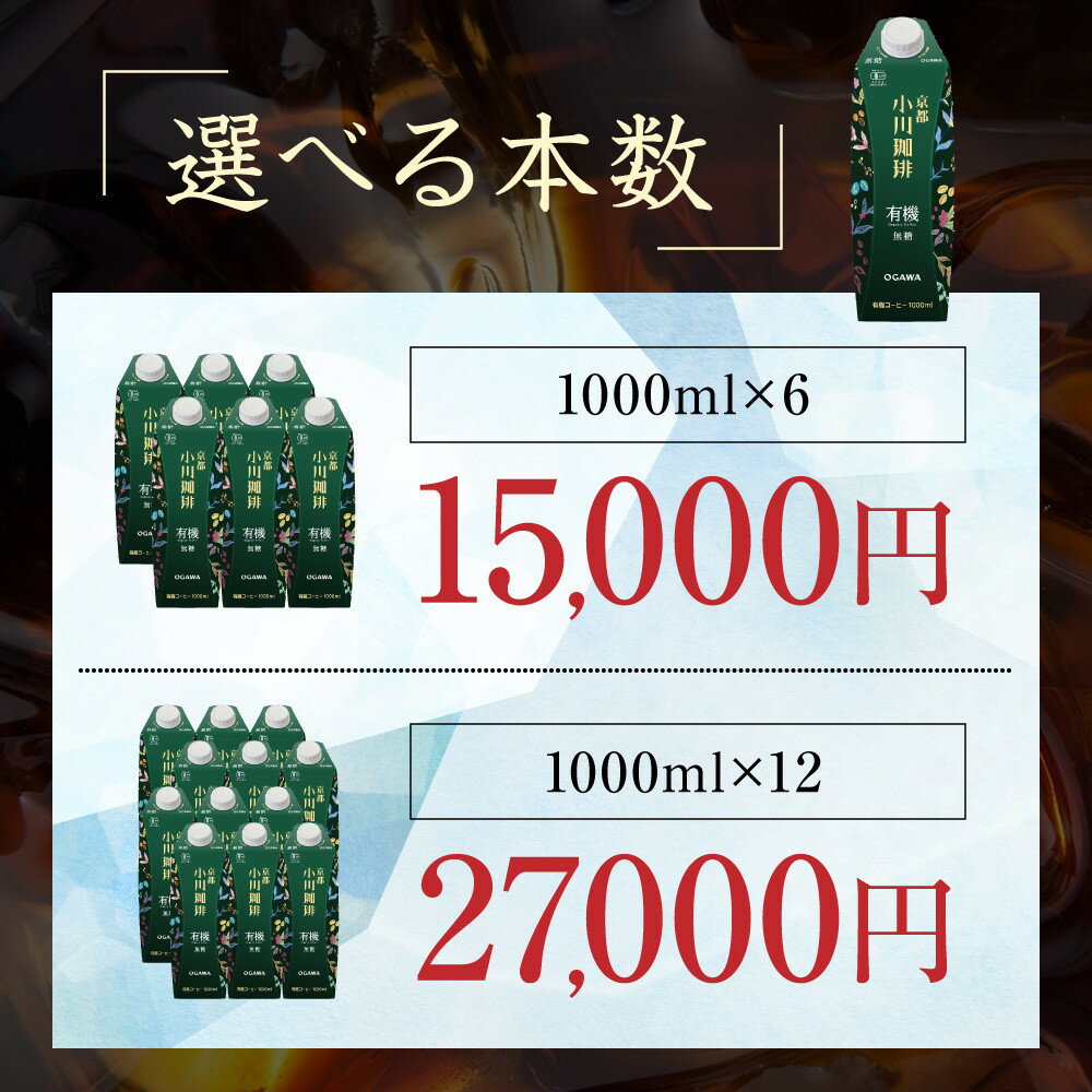 - 【ふるさと納税】【小川珈琲】有機珈琲 アイスコーヒー 無糖 1000ml 選べる 6本/12本 [ 京都 珈琲 ブランド OGAWA アイスコーヒー リキッド 有機 人気 おすすめ 珈琲 コーヒー ギフト プレゼント 贈答 お取り寄せ 通販 送料無料 ふるさと納税 ]