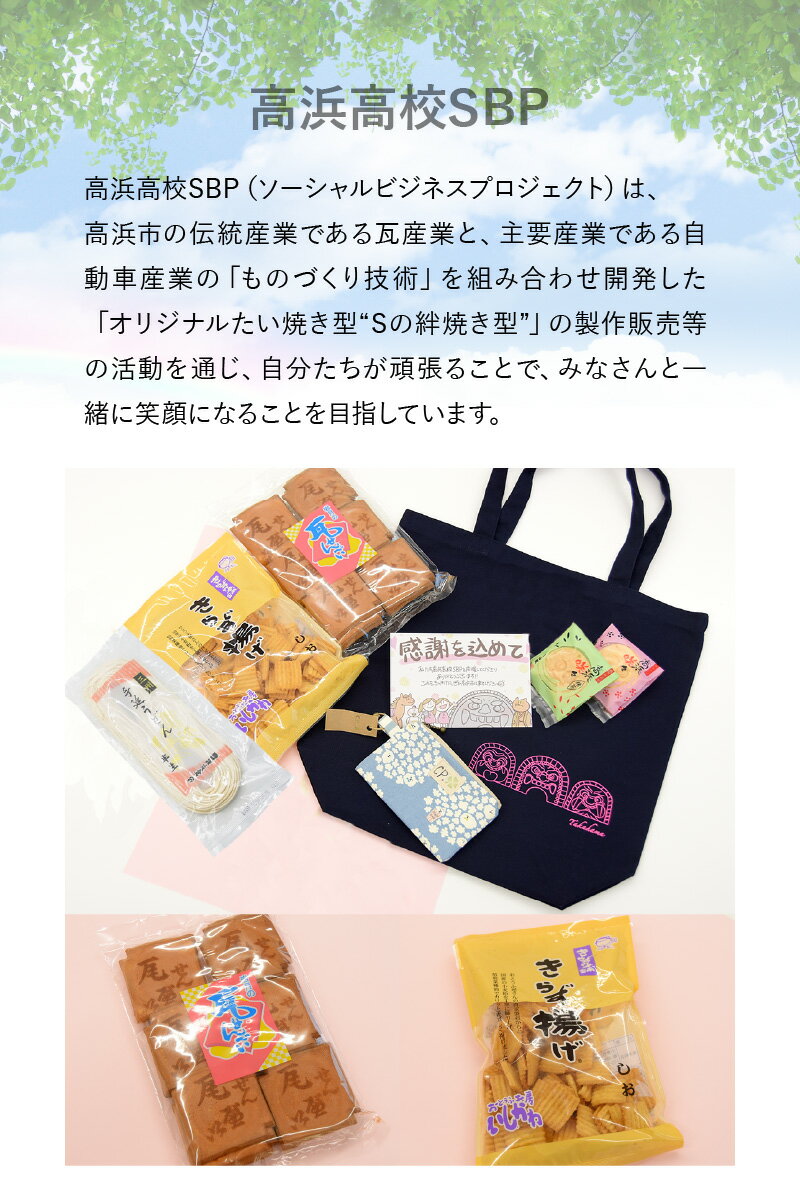 - 【ふるさと納税】高浜高校SBP【セレクトギフト】ソ-シャル・ビジネス・プロジェクト きらず揚げ 瓦せんべい 高浜咲々 半生手延べうどん コインポーチ トートバッグ 詰合せ ギフト 贈り物 高浜市 特産品 地元密着 送料無料