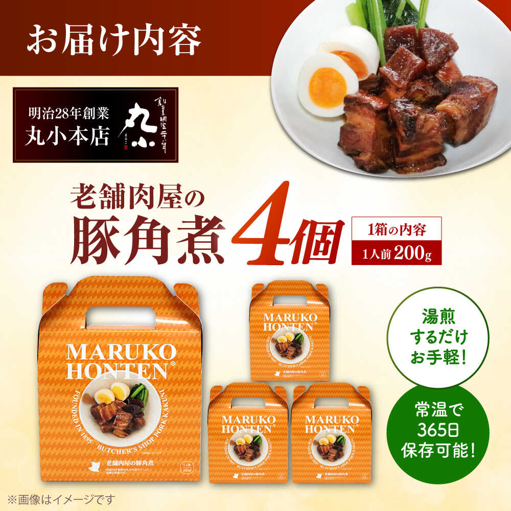 【ふるさと納税】丸小本店 老舗肉屋の自慢の国産豚角煮 1人前200g×4個セット レトルト 豚肉 レンジ対応 豚角煮 時短 簡単 柔らかい 味付け 醤油 ご飯によく合う 豚 豚肉 にく 肉 お肉 お惣菜 おかず おつまみ 恵那市 / テンポイント[AUFN020]