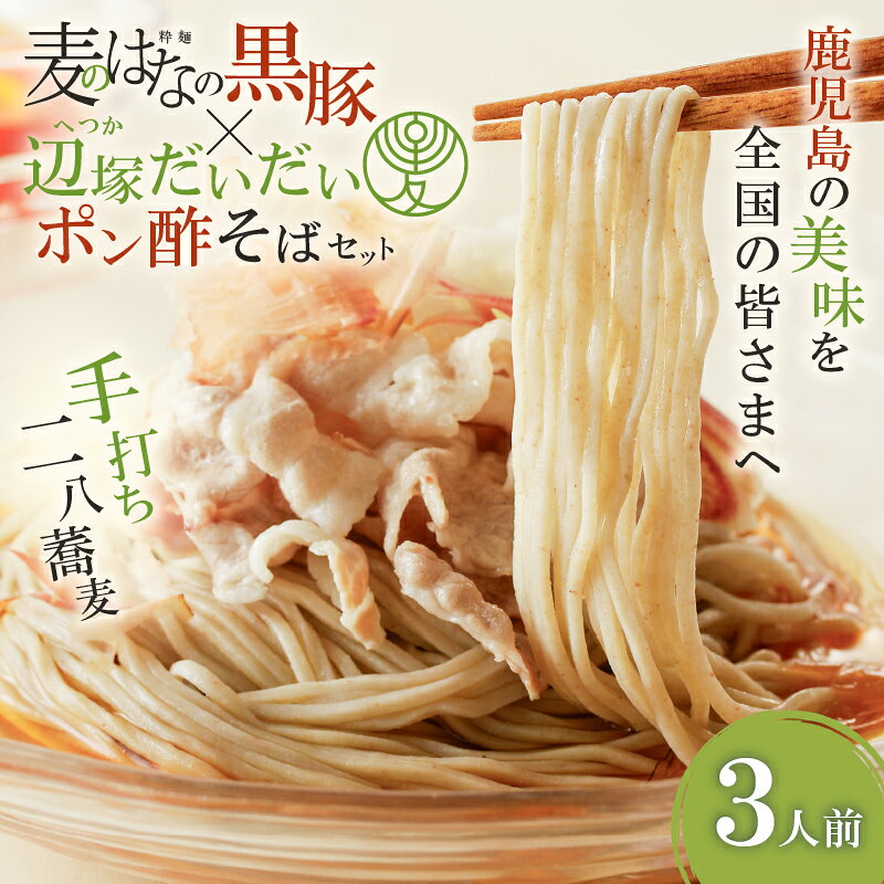 - 【ふるさと納税】 麦のはな の 黒豚×辺塚だいだいポン酢そば セット 3人前 そば 蕎麦 石臼挽きそば 黒豚 ポン酢 辺塚だいだい 鹿児島県産 出汁 こだわり 謹製 豚 肉 スープ 細麺 粋麺麦のはな ふるさと納税 鹿児島 おすすめ ランキング プレゼント ギフト