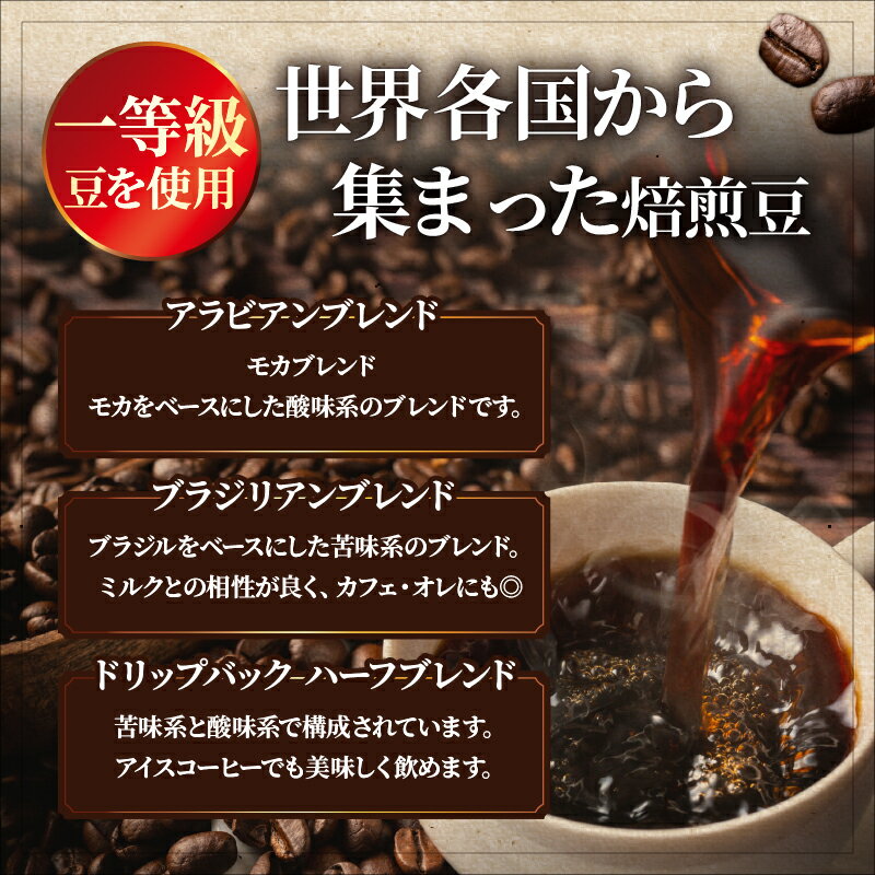 - 【ふるさと納税】自家焙煎珈琲ブレンド豆 2種類 & ドリップバック コーヒー セット 挽き豆 コーヒー豆 アラビアン モカ ブラジリアン ブレンド 各200g 飲み比べ 飲料 ギフト おすそ分け カフェ・オレ アイスコーヒー 酸味系 お取り寄せ 大分県 別府市 送料無料