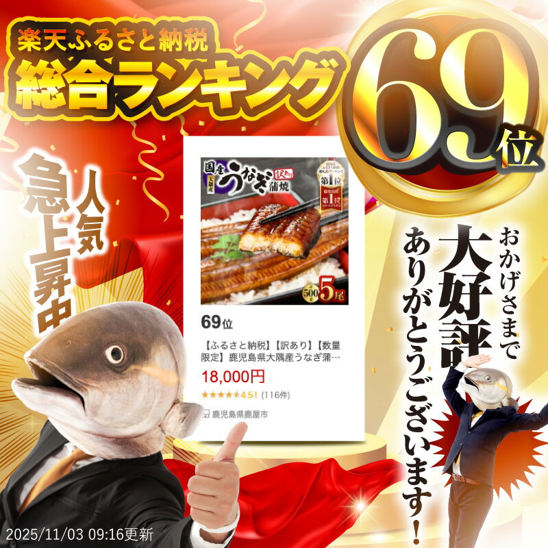 - 【ふるさと納税】【訳あり】【数量限定】鹿児島県大隅産うなぎ蒲焼5尾(500g)たれ・山椒付き!うなぎ 鹿児島 本格 鰻 ウナギ 蒲焼 冷凍 湯煎 レンジ 解凍 簡単調理 鰻丼 鰻重 ひつまぶし 魚 土用の丑 小分け【大隅地区養まん漁業協同組合】