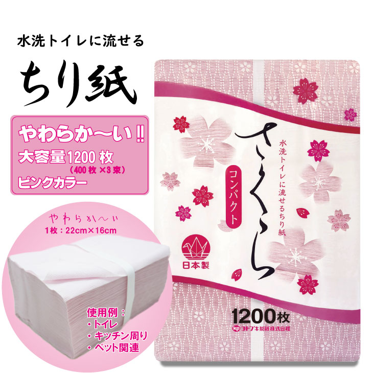 - 【水洗トイレに流せるちり紙】さくら1200枚 X 10パック