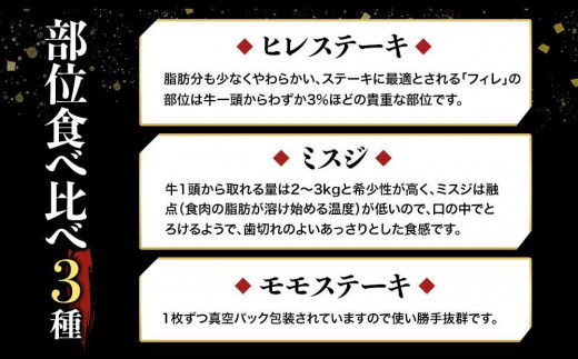 【定期便全12回】博多和牛【A4~A5】ステーキ部位食べ比べ3種(ヒレ150g×2枚、ミスジ100g×2枚、モモ100g×2枚)計700g