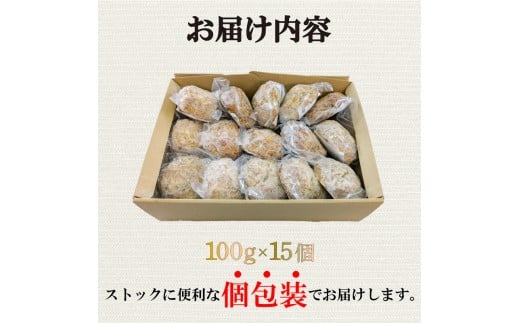 ハンバーグ 1.5kg 100g × 15個 ( 黒毛和牛 関門ポーク 牛肉 豚肉 冷凍 国産 保存料 不使用 ビーフ ポーク ジューシー お弁当 おかず 惣菜 晩ごはん ) 下関 山口