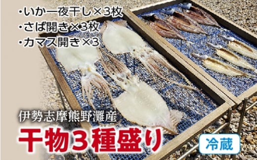 - (冷蔵)干物3種盛り/伊勢志摩 熊野灘 鈴木水産 天日干し 干物 スルメ イカ サバ カマス 度会町