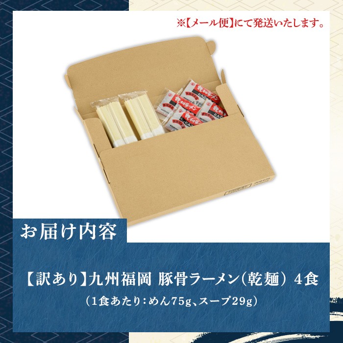 - 《訳あり》九州福岡 豚骨ラーメン(4食) 豚骨 豚骨ラーメン とんこつラーメン 豚骨 乾麺 かんめん わけあり 訳アリ 業務用 簡易包装 メール便 お試し おためし 個包装 小分け 常温 常温保存 長期保存【マル五】as06-094