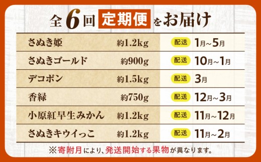 - とれたて果物 6回定期便A 果物 フルーツ 果物定期便 フルーツ定期便 定期便 いちご キウイ デコポン みかん 濃厚 旬の果物 定期 人気 おすすめ 贈答 贈り物 青果物 糖度 香川県 _mk165-t083