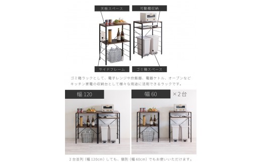 キッチンカウンター ブラウン×ブラック ゴミ箱上ラック 幅60cm×2台 幅120cm AVD104492202