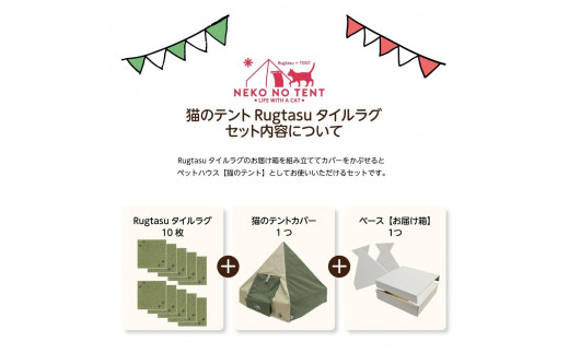 Rugtasu ラグタスタイルラグ てくてく肉球10枚&猫のテント アウトドアデザイングリーンセット