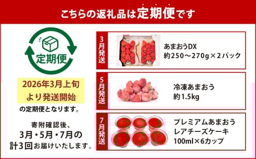 - 【予約受付・3回定期便】あまおう贅沢セット No2 あまおうDX 冷凍あまおう あまおうレアチーズケーキ あまおう いちご イチゴ 苺 果物 くだもの フルーツ スイーツ デザート 定期便【2026年3月上旬~7月下旬発送予定】