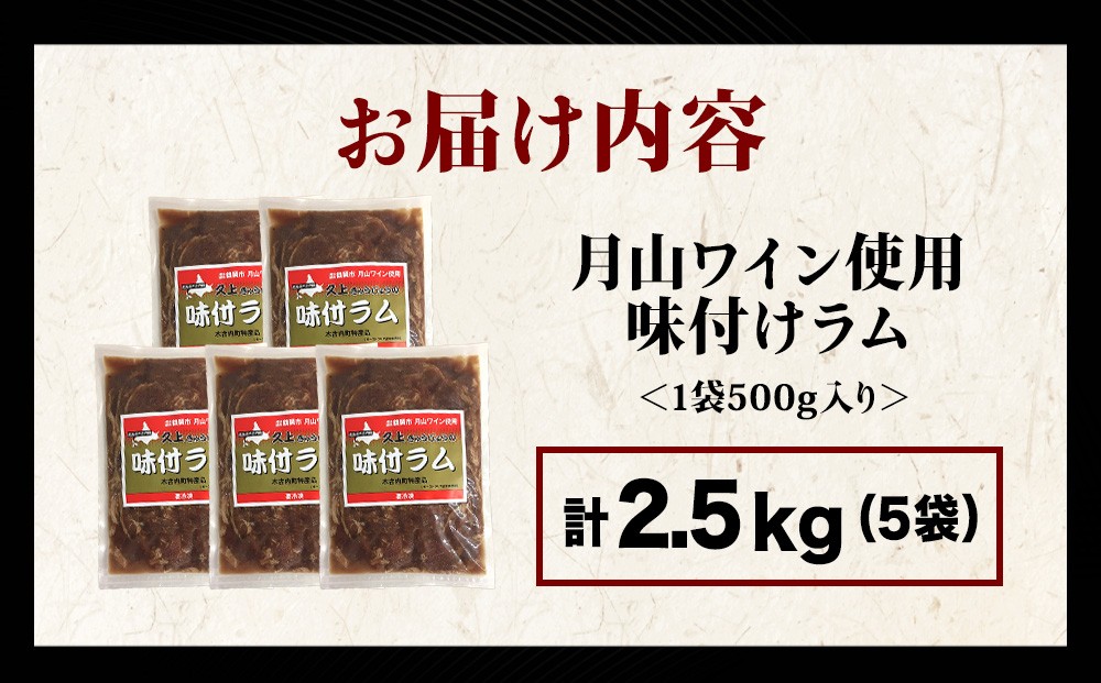 - 【久上 工藤商店】木古内町『熟味焼肉 久上』の月山ワイン使用 味付ラム500g 5袋