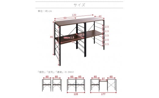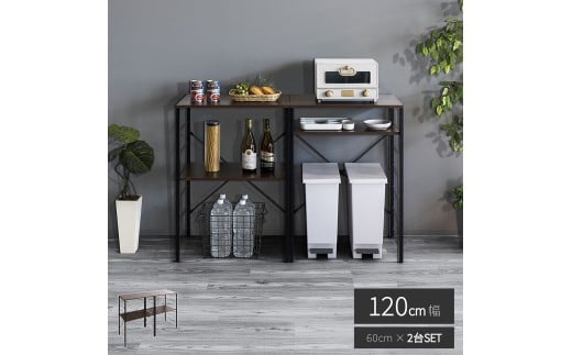 - [選べるカラ―]キッチンカウンター ゴミ箱上ラック 幅60cm×2台 幅120cm