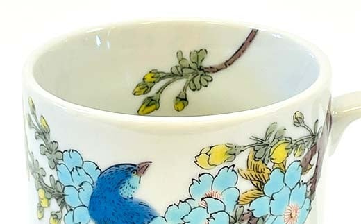 - 九谷焼 マグカップ 桜に青い鳥 食器 コップ 日本製 ギフト プレゼント F6P-2876