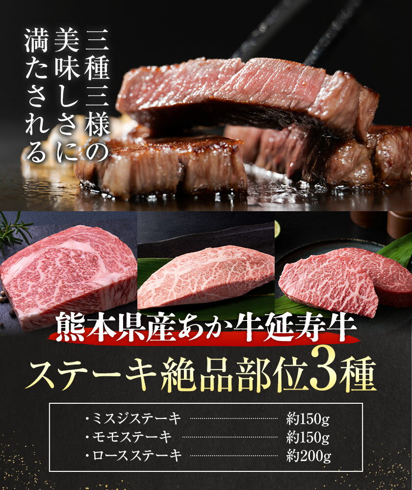 【ふるさと納税】熊本県産 あか牛 「-延寿牛-」 ステーキ 絶品部位 3種 ロース ミスジ モモ 食べ比べ 約500g 株式会社ワンエイト《30日以内に出荷予定(土日祝除く)》熊本県 苓北町 延寿牛 牛肉 ステーキ ロースステーキ ミスジステーキ モモステーキ【配送不可地域あり】