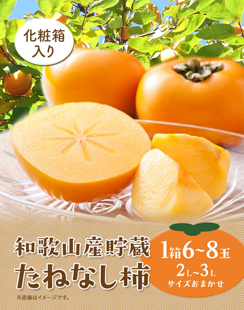 - 【ふるさと納税】和歌山産貯蔵たねなし柿 化粧箱入り 6〜8玉 (2L〜3Lサイズおまかせ) 厳選館 《12月中旬-1月下旬頃出荷》和歌山県 日高川町 柿 カキ かき ジューシー フルーツ たねなし 化粧箱