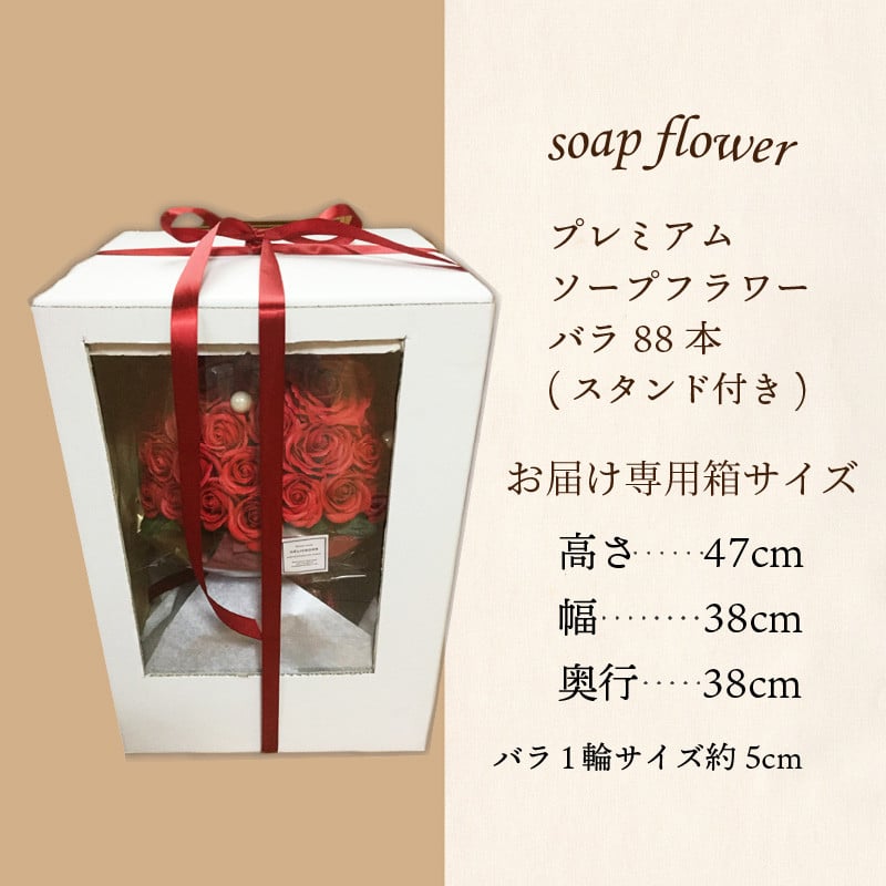 赤バラ88本 プレミアムソープフラワー ( ソープフラワー 石鹸 せっけん バラ 赤バラ 記念日 贈答 プレゼント 贈り物 花 フラワー 米寿 88 記念 お祝い )【122-0007】