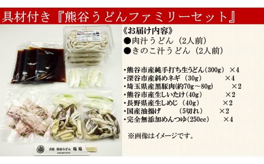- 【 手打ち 熊谷うどん ファミリーセット (4人前) (肉汁うどん2人前+きのこ汁うどん2人前)】 TV番組 『バナナマンのせっかくグルメ』 紹介店! 他にもTV出演多数! 熊谷市産小麦 『あやひかり』 100%使用! 国産 無添加 化学調味料・保存料不使用 TV紹介店