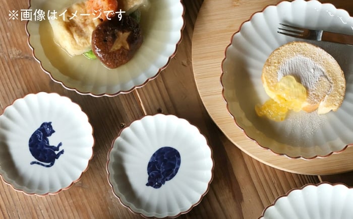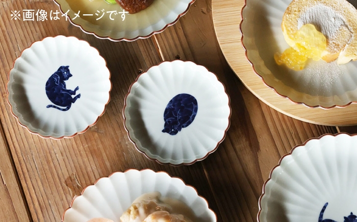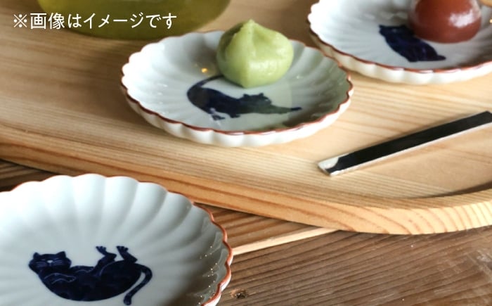 - 【波佐見焼】呉須猫 小皿 〈へそ天〉 3点セット 食器【西海陶器】 [OA477]