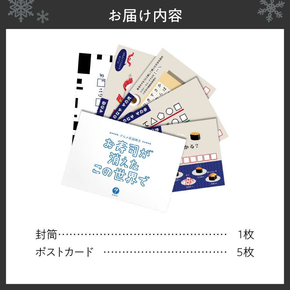 - 【ふるさと納税】 謎解き ゲーム 『グルメ系謎解き お寿司の消えたこの世界で』 説明書付き 経験者 中級者 初心者 ビギナー ホビー 趣味 北海道 札幌市