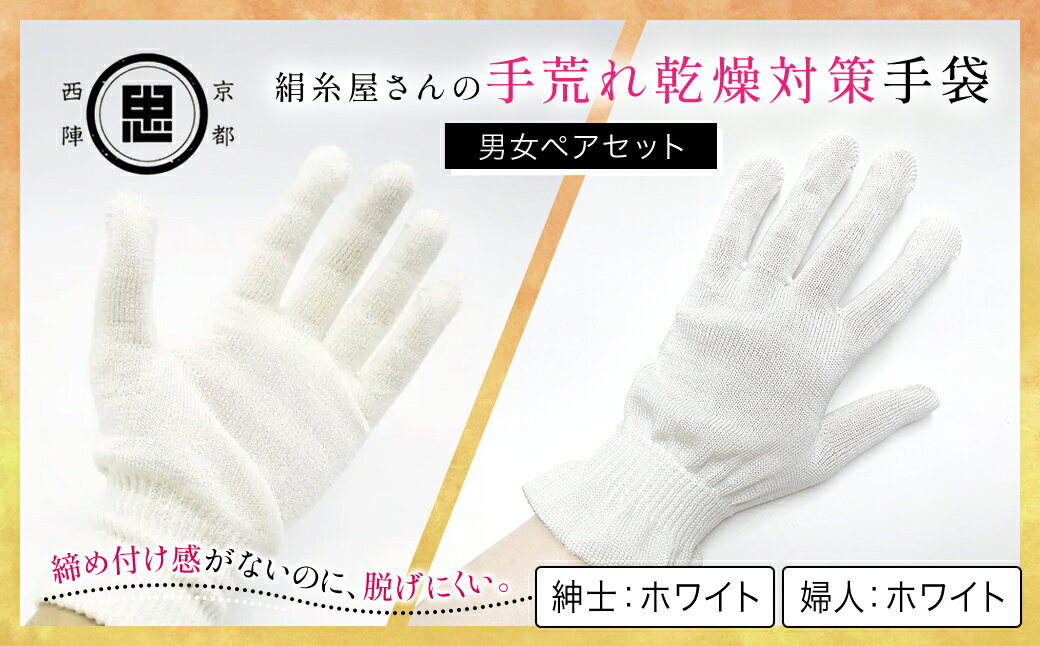 【ふるさと納税】【選べる3タイプ】【セット】絹糸屋さんの手荒れ乾燥対策手袋(男女ペアセット)[ホワイト×ホワイト][ブラック×ブラック][ピンク×ネイビー] FCFA033-v