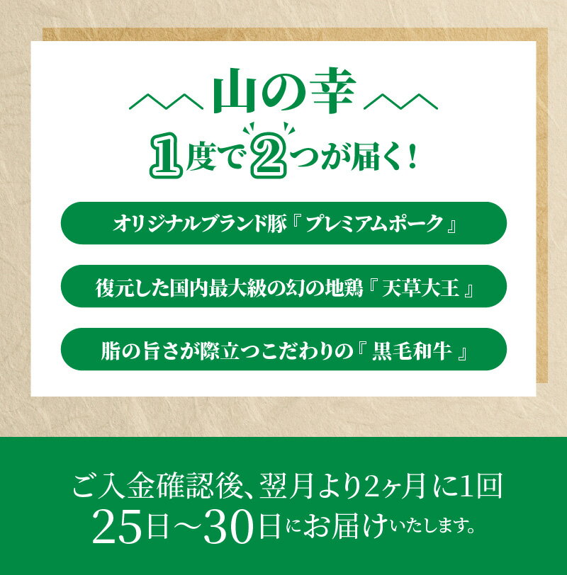 【ふるさと納税】定期便 3回 山の幸 コース 豚肉 鶏肉 牛肉 黒毛和牛 地鶏 天草大王 プレミアムポーク 隔月配送 すき焼き 炭火焼 ステーキ たれ 冷凍 セット 天草 満喫 グルメ 熊本県 産地直送 お取り寄せグルメ 送料無料