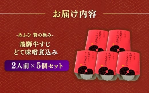 -あふひ 贅の極み- 飛騨牛すじどて味噌煮込み 2人前×5個セット / 飛騨牛 肉 牛肉 国産和牛 すじ どて 味噌 煮込み レシピ 簡単 人気 作り方 おすすめ ご当地 名物 美味しい 和食 ご飯 おつまみ 赤味噌 食べ方 保存 牛筋 牛筋煮込み 牛すじ煮込み レトルト どて煮 おつまみ おかず お惣菜 / 恵那市 / テンポイント [AUEU012]