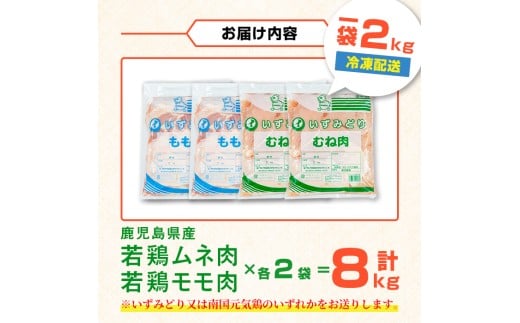 - i1095 鹿児島県産 若鶏ムネ肉・モモ肉 2種セット (計8kg・各2kg×2P ) 鶏肉 むね肉 もも肉 セット 国産 チキン もも むね 美味しい ダイエット 料理 【まつぼっくり】