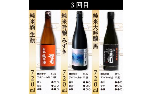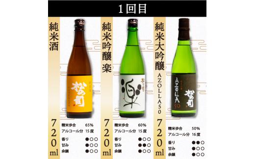 定期便 松の司 9本(3種類×3回) 720ml 「純米酒」 「楽」 「AZOLLA50」 「限定純米酒」 「純米吟醸」 「陶酔」 「生酛純米酒」 「みずき」 「黒」 日本酒 酒 日本酒 清酒 地酒 松の司 瓶 ギフト お歳暮 プレゼント 松瀬酒造 滋賀 竜王 送料無料
