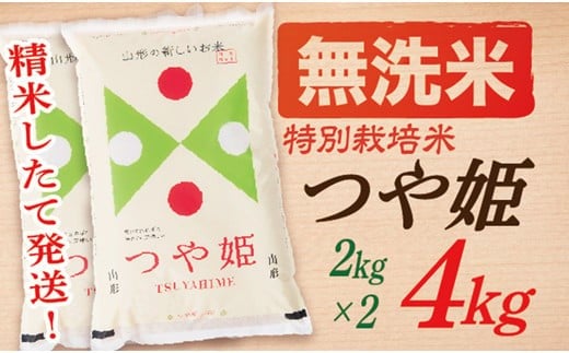 【令和7年産】【無洗米】山形県産つや姫4kg(2kg×2袋)