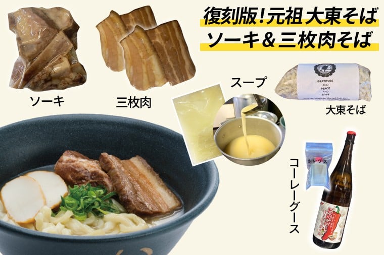 復刻版!元祖大東そばのソーキ&三枚肉そばミックス4食セット【Drive-in Nanachi(ドライブインナナチ)】(BU003-2)